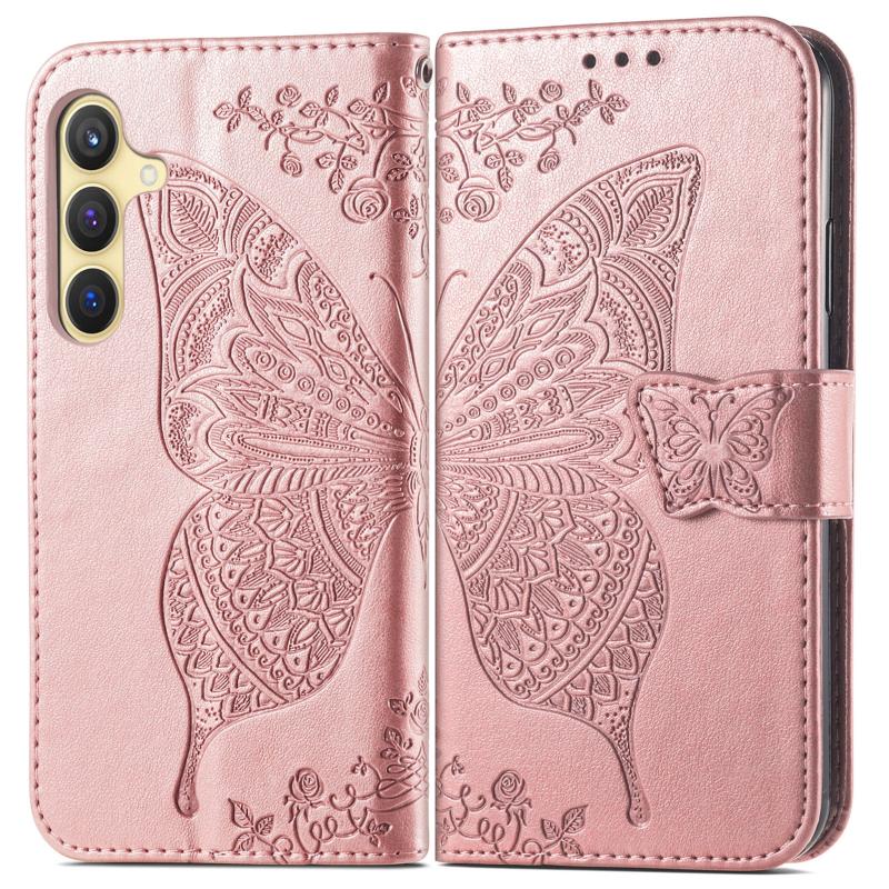 For Samsung Galaxy A36 Butterfly Love Flower Embossed Leather Phone Case(Rose Gold)