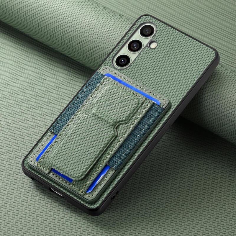 Για Samsung Galaxy A36 Carbon Fiber Fold Stand ελαστική κάρτα τσάντα υπόθεση τηλεφώνου (πράσινο)