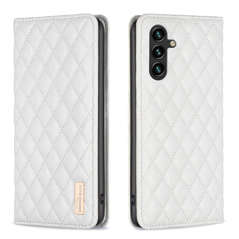 Για Samsung Galaxy A36 Diamond Lattice μαγνητική δερμάτινη θήκη για κινητό (λευκό)