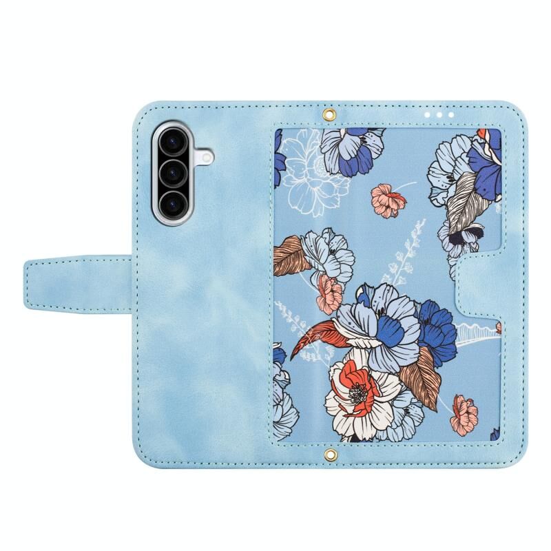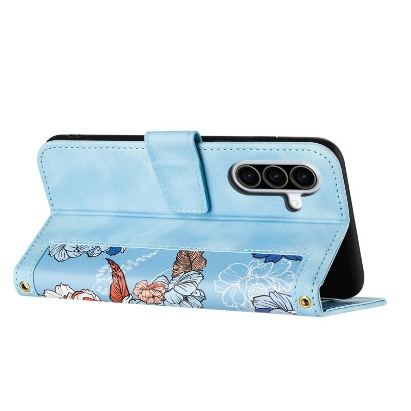 Θήκη τηλεφώνου Samsung Galaxy A36 από δέρμα με λουλουδάτο σχέδιο και κορδόνι (Ανοιχτό Μπλε)