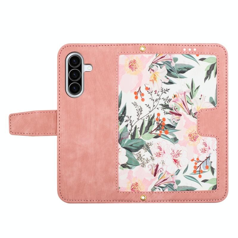 Θήκη τηλεφώνου Samsung Galaxy A36 από δέρμα με λουλουδάτο σχέδιο και κορδόνι (ρόζ)