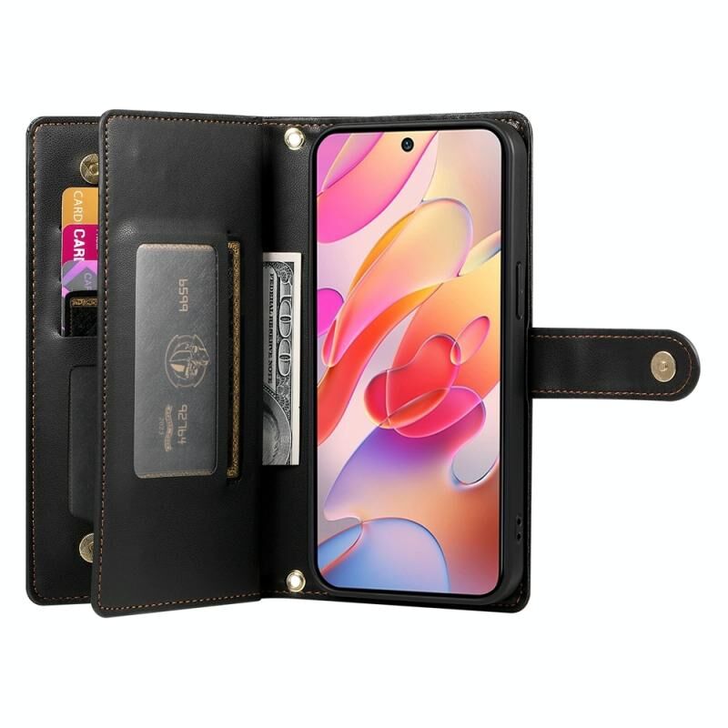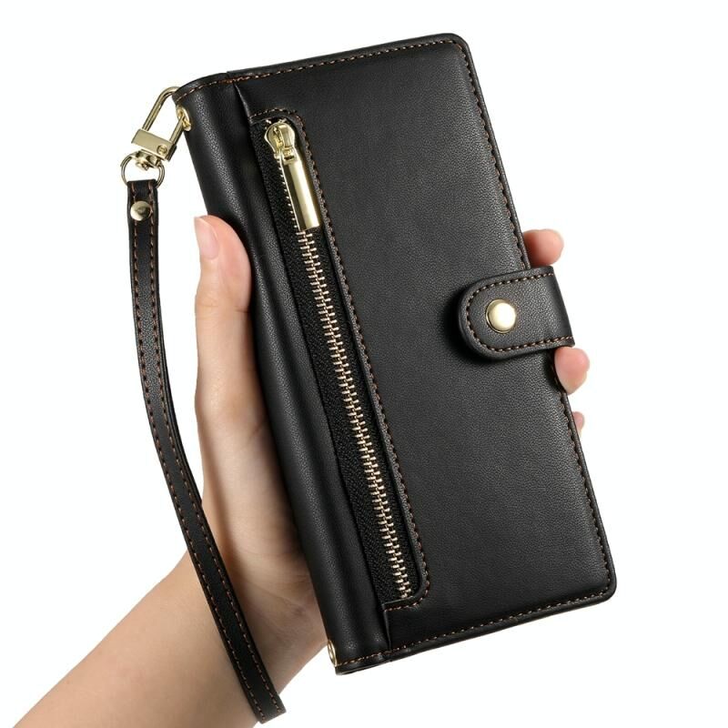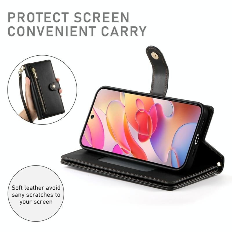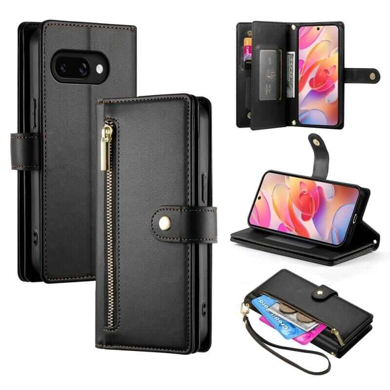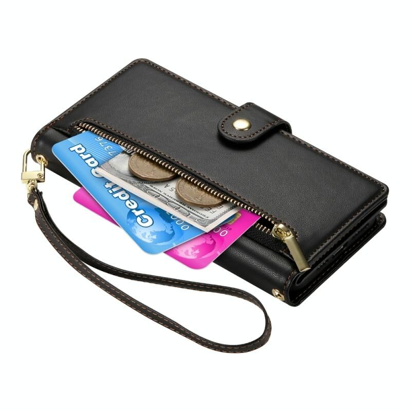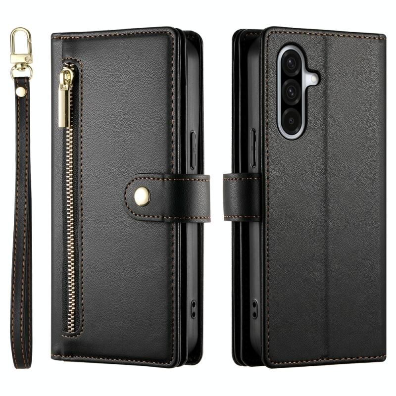 Για Samsung Galaxy A36 Nine Card-slot φερμουάρ πορτοφόλι τσάντα δερμάτινη θήκη τηλεφώνου (μαύρο)