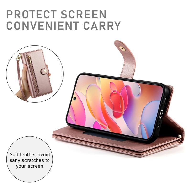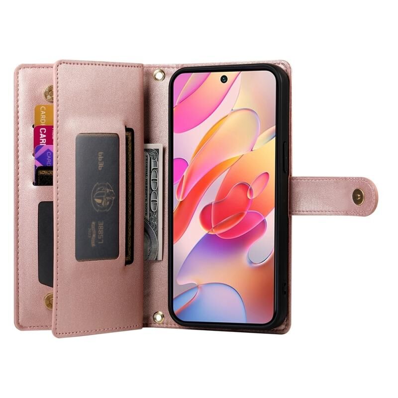 Για Samsung Galaxy A36 Nine Card-slot φερμουάρ πορτοφόλι τσάντα δερμάτινη θήκη τηλεφώνου (ροζ)