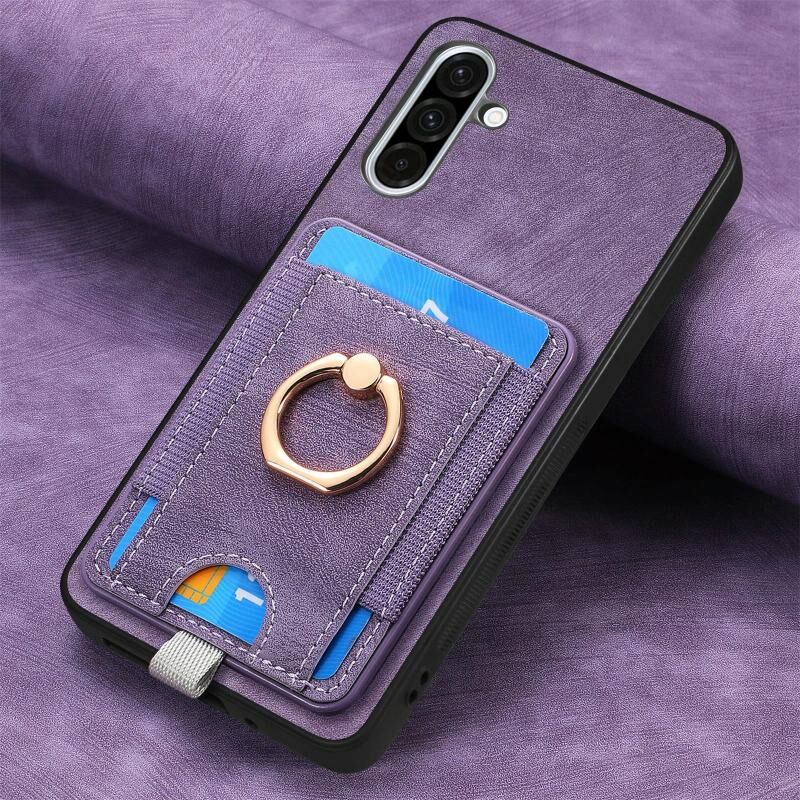 Για Samsung Galaxy A36 Retro Splitable μαγνητική κάρτα τσάντα τσάντα δέρμα υπόθεση τηλεφώνου (μωβ)