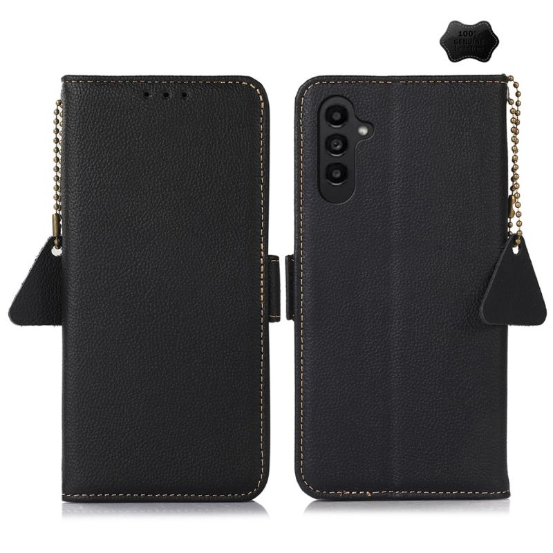 For Samsung Galaxy A36 Side-Magnetic TJ Genuine Leather RFID Phone Case(Black)