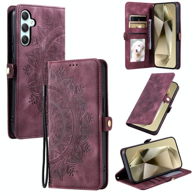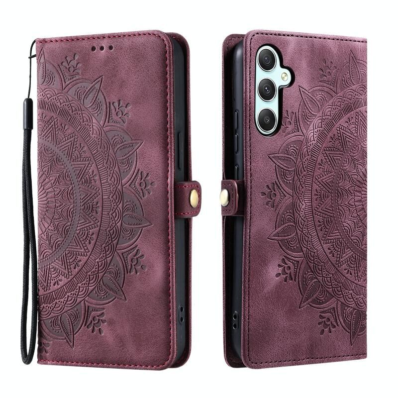Για Samsung Galaxy A36 Skin Feel Totem ανάγλυφη δερμάτινη θήκη τηλεφώνου (κόκκινο κρασί)