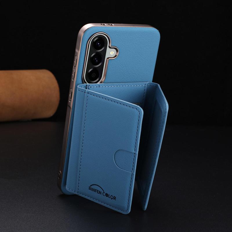 For Samsung Galaxy A36 Solid Color Horizontal Magnetic Card Bag RFID MagSafe Phone Case(Baby Blue)