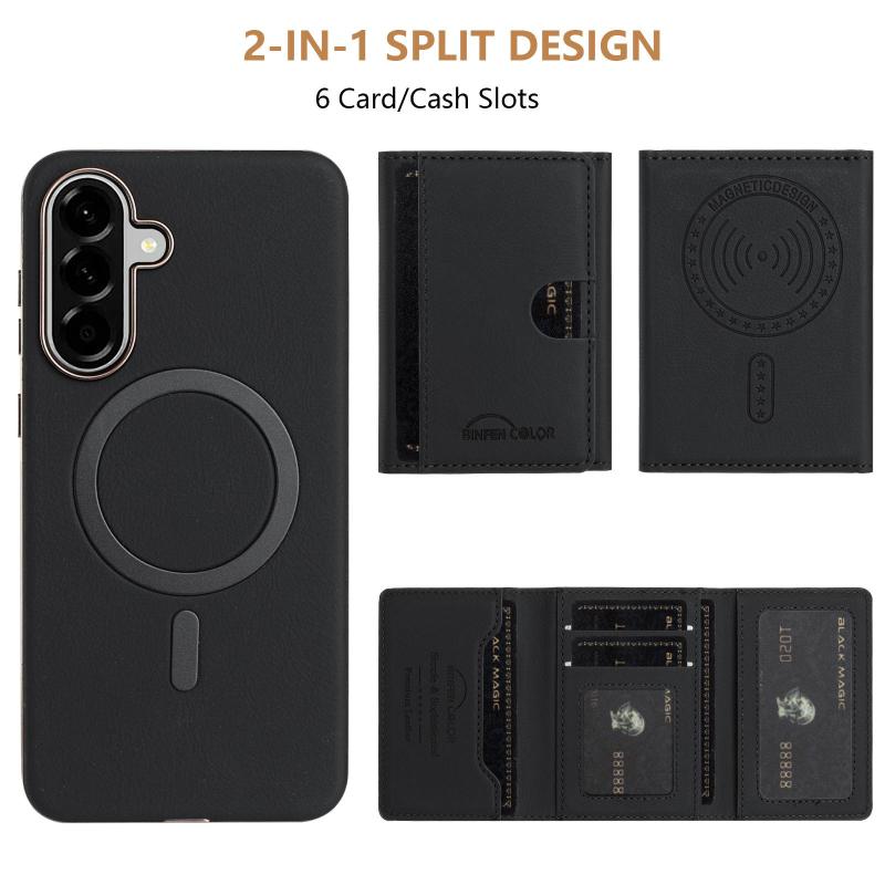 For Samsung Galaxy A36 Solid Color Horizontal Magnetic Card Bag RFID MagSafe Phone Case(Black)