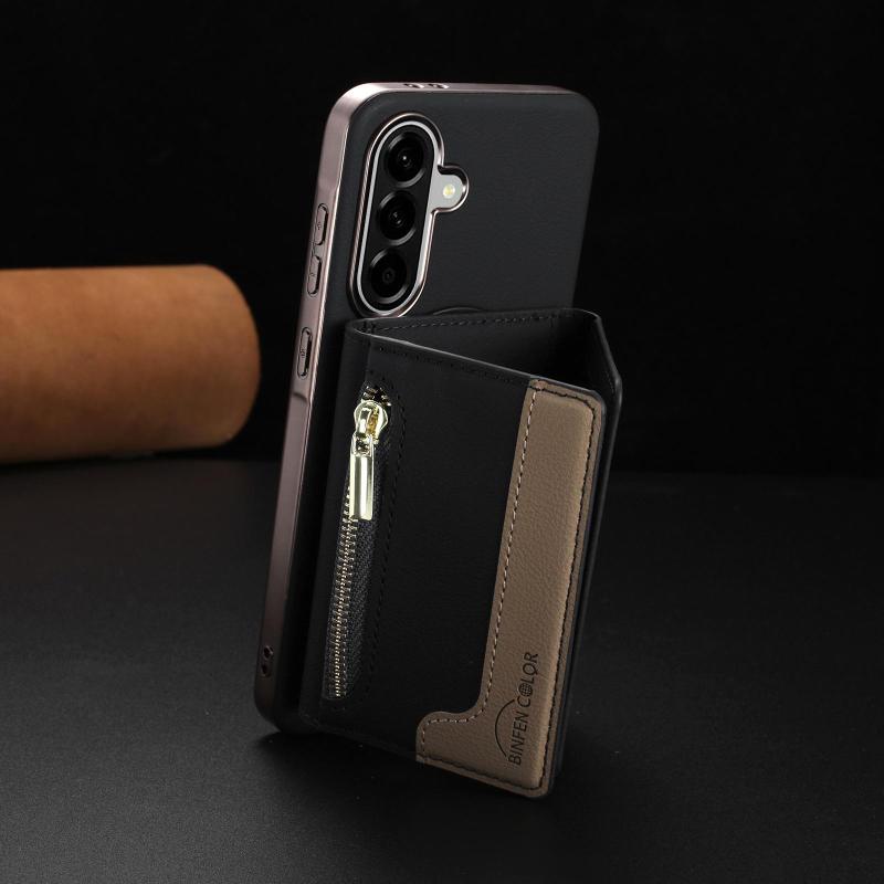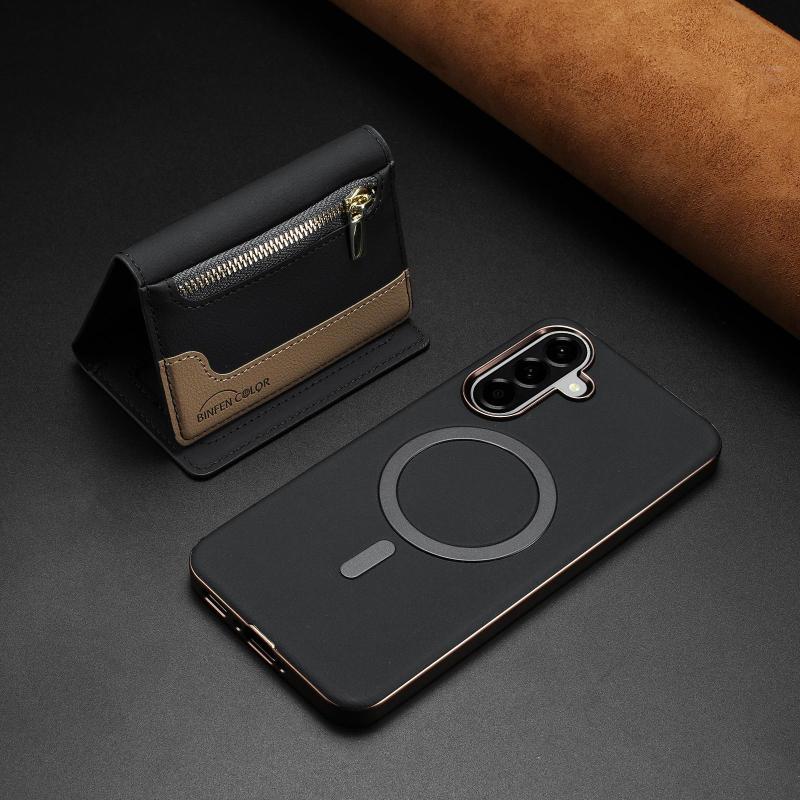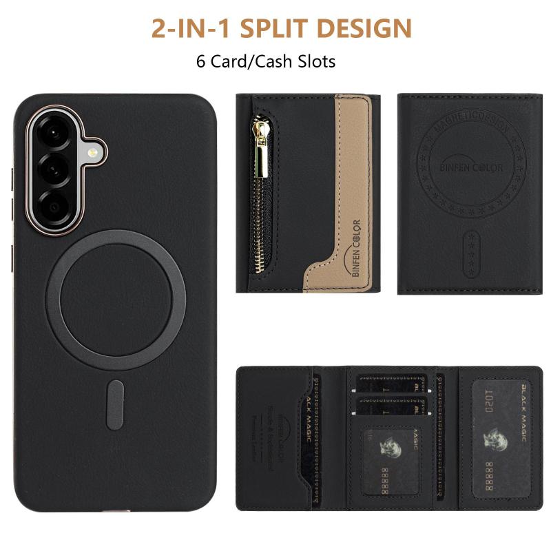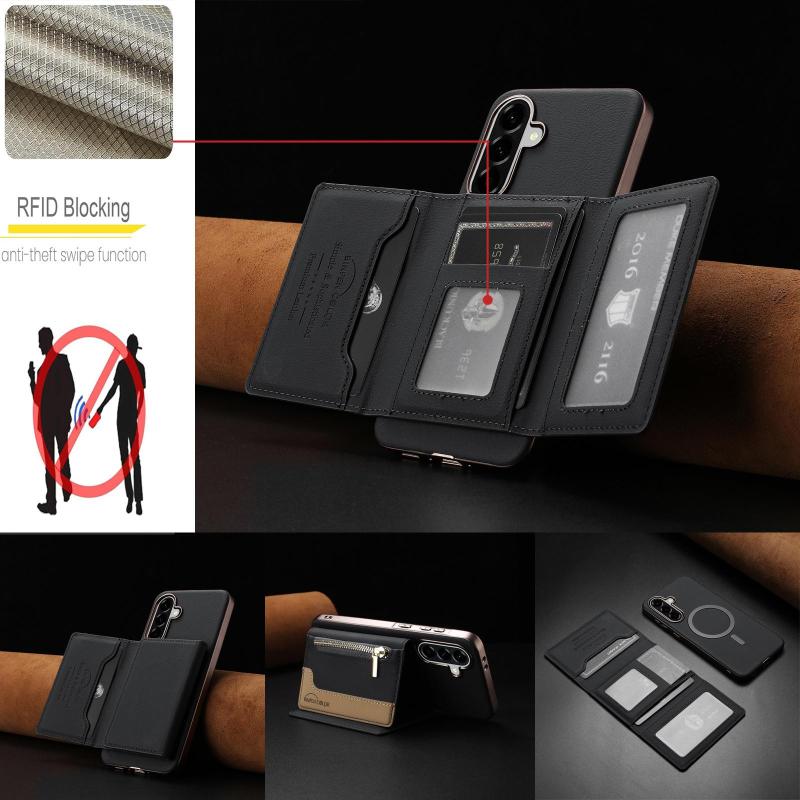 For Samsung Galaxy A36 Zipper Horizontal Magnetic Card Bag RFID MagSafe Phone Case(Black)