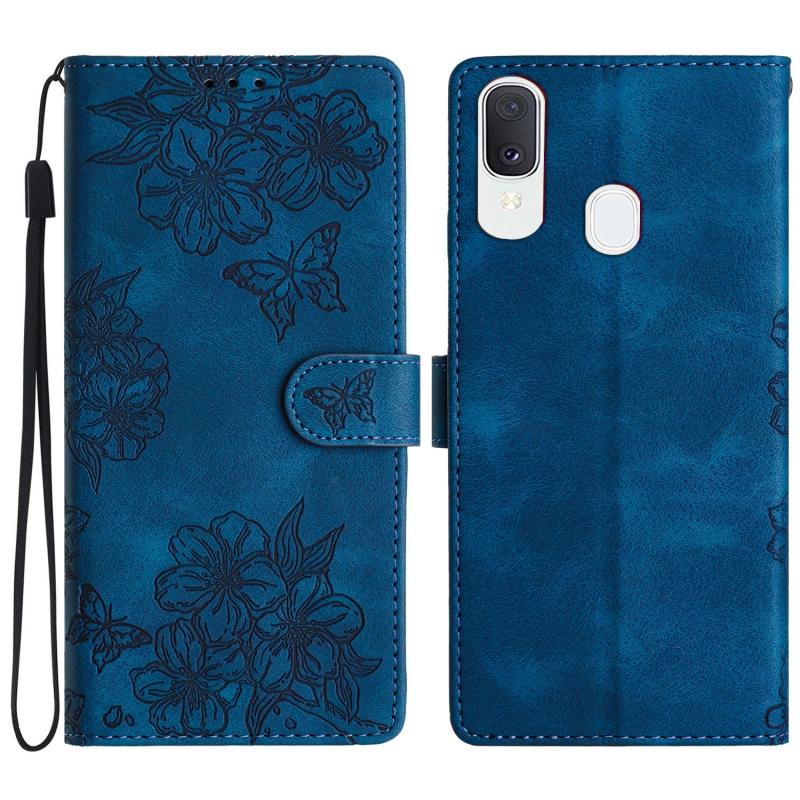 Θήκη κινητού τηλεφώνου Samsung Galaxy A40 Cherry Blossom Butterfly Skin Feel Embossed PU (Μπλε)
