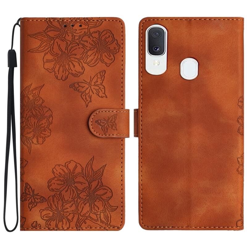 Θήκη κινητού τηλεφώνου Samsung Galaxy A40 Cherry Blossom Butterfly Skin Feel Embossed PU (Κόκκινη)