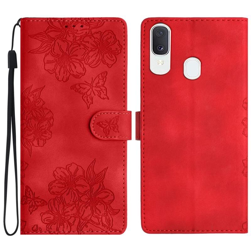 Θήκη κινητού τηλεφώνου Samsung Galaxy A40 Cherry Blossom Butterfly Skin Feel Embossed PU (Κόκκινο)