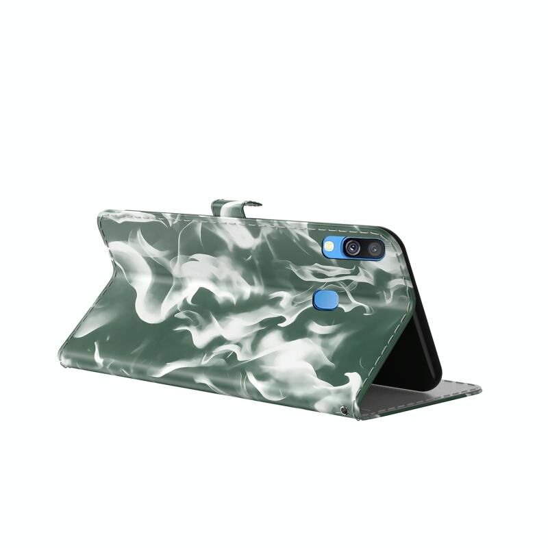 Για Samsung Galaxy A40 Cloud Fog μοτίβο οριζόντια Flip δερμάτινη θήκη με υποδοχή & υποδοχή για κάρτες & πορτοφόλι (σκούρο πράσινο)