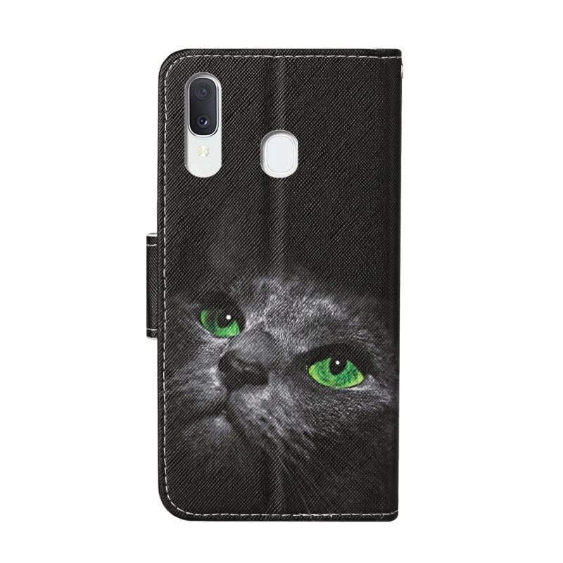 Θήκη Samsung Galaxy A40 Δερμάτινη Οριζόντια με σχέδιο πολύχρωμης ζωγραφικής, με βάση & θήκες καρτών & πορτοφόλι (Σχέδιο Γάτας)