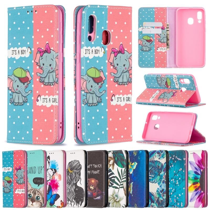 Θήκη Samsung Galaxy A40 με πολύχρωμο σχέδιο, αόρατο μαγνητικό, οριζόντιο flip από δερματίνη PU με βάση & θήκες για κάρτες & πορτοφόλι (Κόκκινο)