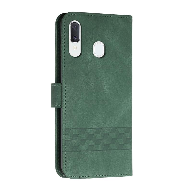 For Samsung Galaxy A40 Cubic Skin Feel Flip Leather Phone Case(Dark Green)