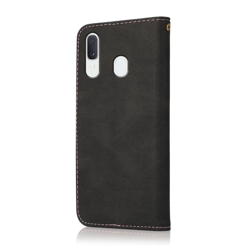Θήκη τηλεφώνου Samsung Galaxy A40 από δέρμα με διχρωμία ραφής (Μαύρο Ροζ Χρυσό)