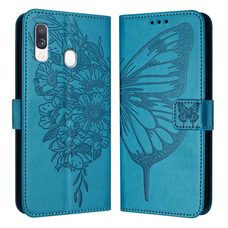 Για Samsung Galaxy A40 ανάγλυφη πεταλούδα δερμάτινη θήκη τηλεφώνου (μπλε)