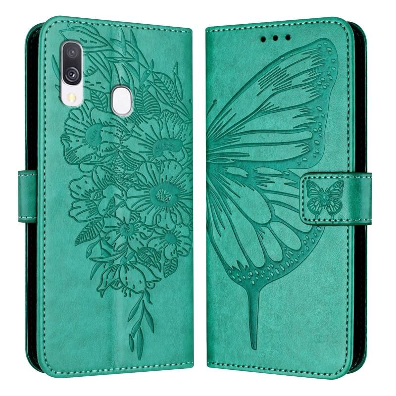Για Samsung Galaxy A40 ανάγλυφη πεταλούδα δερμάτινη θήκη τηλεφώνου (πράσινο)