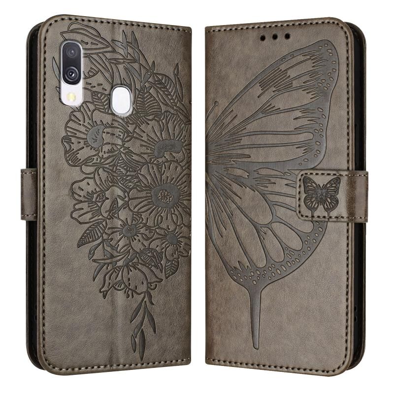 Για Samsung Galaxy A40 ανάγλυφη πεταλούδα δερμάτινη θήκη τηλεφώνου (γκρι)