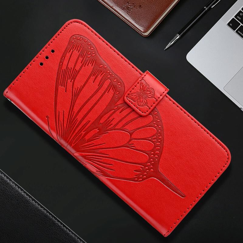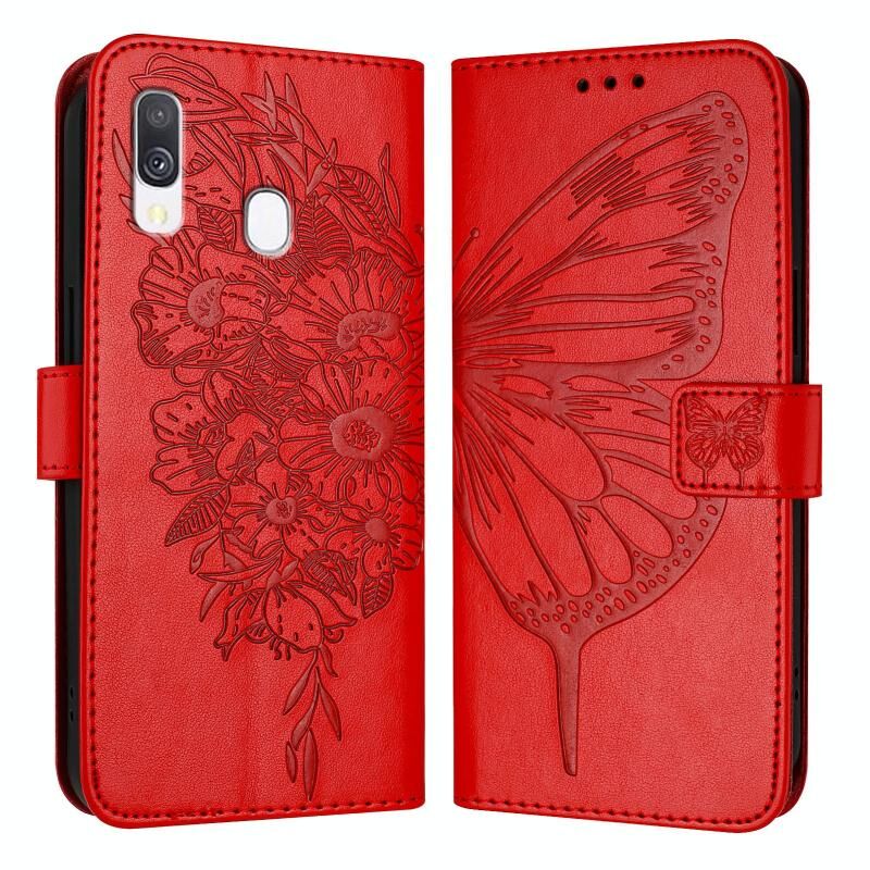 Για Samsung Galaxy A40 ανάγλυφη πεταλούδα δερμάτινη θήκη τηλεφώνου (κόκκινο)