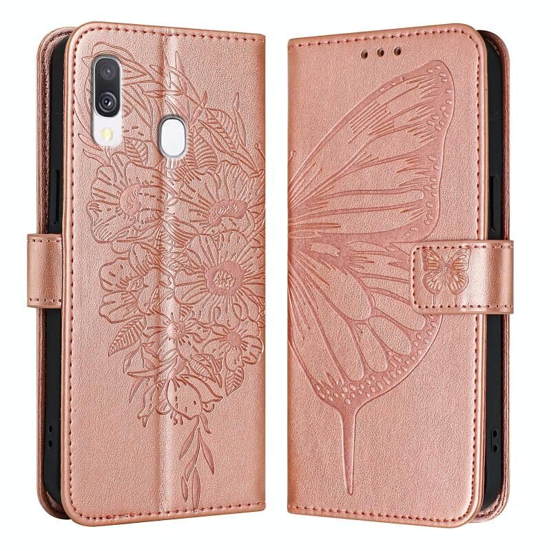 Για Samsung Galaxy A40 ανάγλυφη πεταλούδα δερμάτινη θήκη τηλεφώνου (ροζ χρυσό)