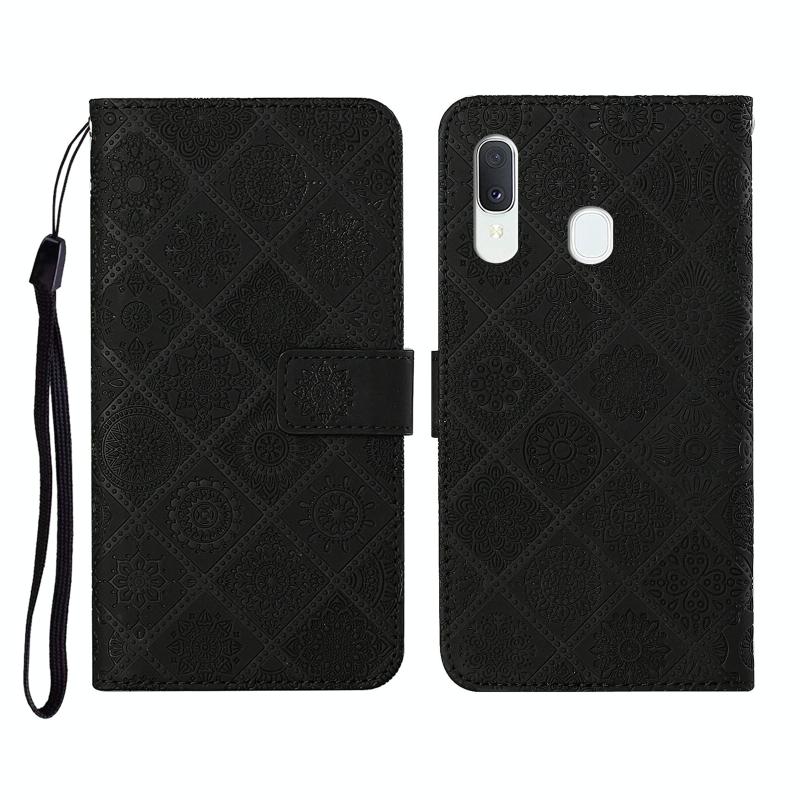 Θήκη Samsung Galaxy A40, Δερμάτινη, Οριζόντια, με σχέδιο Ethnic, ανάγλυφη, με βάση στήριξης, θήκες για κάρτες, πορτοφόλι & λουρί (Μαύρο)