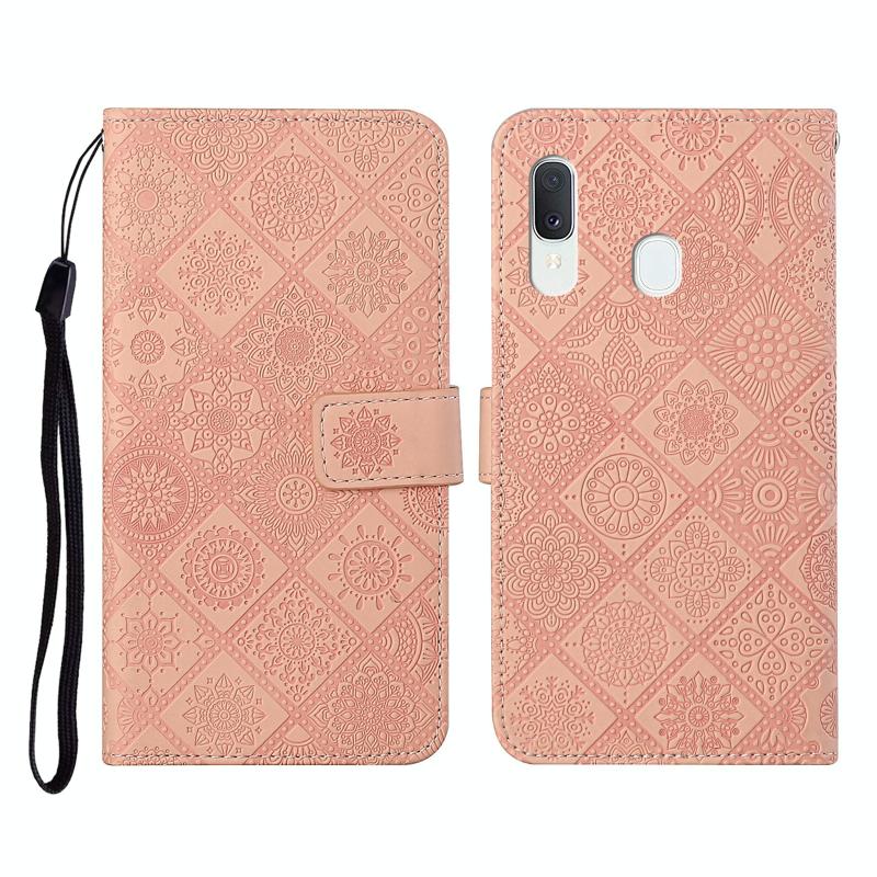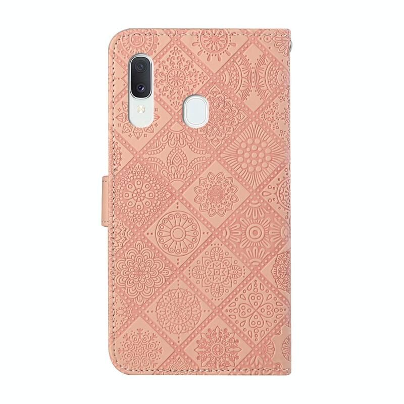 Θήκη Samsung Galaxy A40, Δερμάτινη, Οριζόντια, με σχέδιο Ethnic, ανάγλυφη, με βάση στήριξης, θήκες για κάρτες, πορτοφόλι & λουρί (ρόζ)