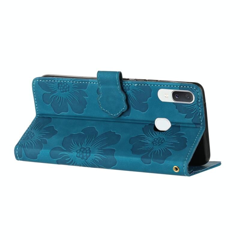 Για Samsung Galaxy A40 λουλούδι ανάγλυφο μοτίβο δερμάτινη θήκη τηλεφώνου (μπλε)