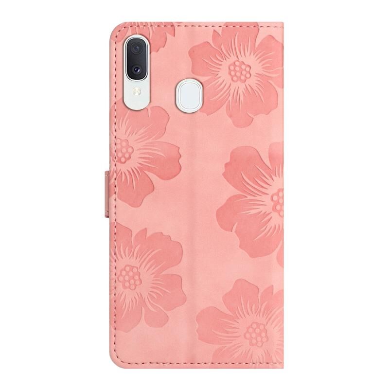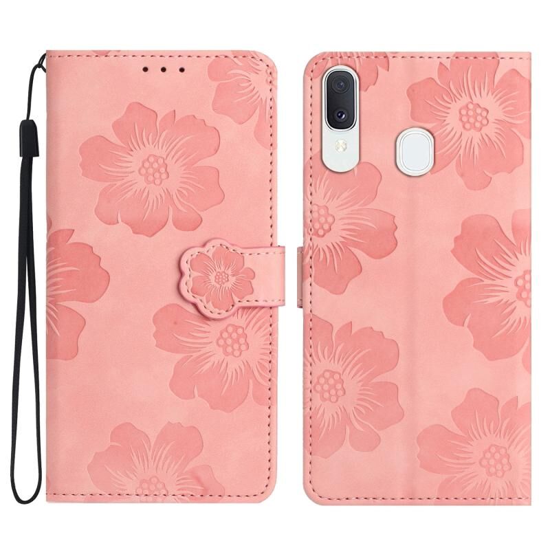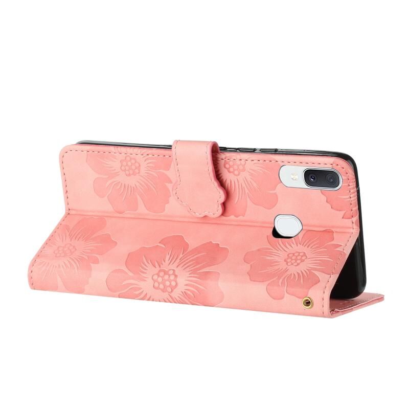Για Samsung Galaxy A40 λουλούδι ανάγλυφο μοτίβο δερμάτινη θήκη τηλεφώνου (ροζ)