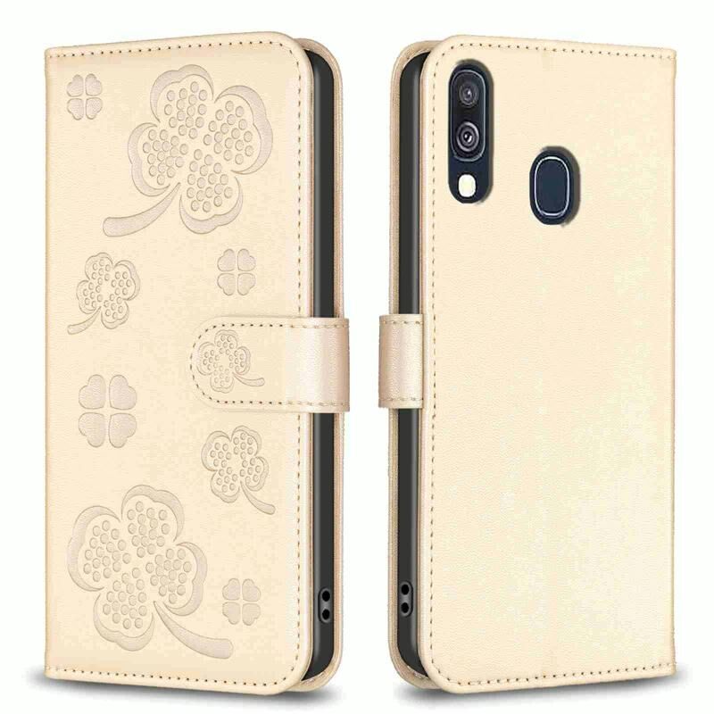 Για Samsung Galaxy A40 τετράφυλλο ανάγλυφο δέρμα υπόθεση τηλεφώνου (χρυσό)