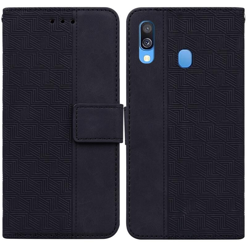 Για Samsung Galaxy A40 Γεωμετρική ανάγλυφη δερμάτινη θήκη τηλεφώνου (Μαύρο)
