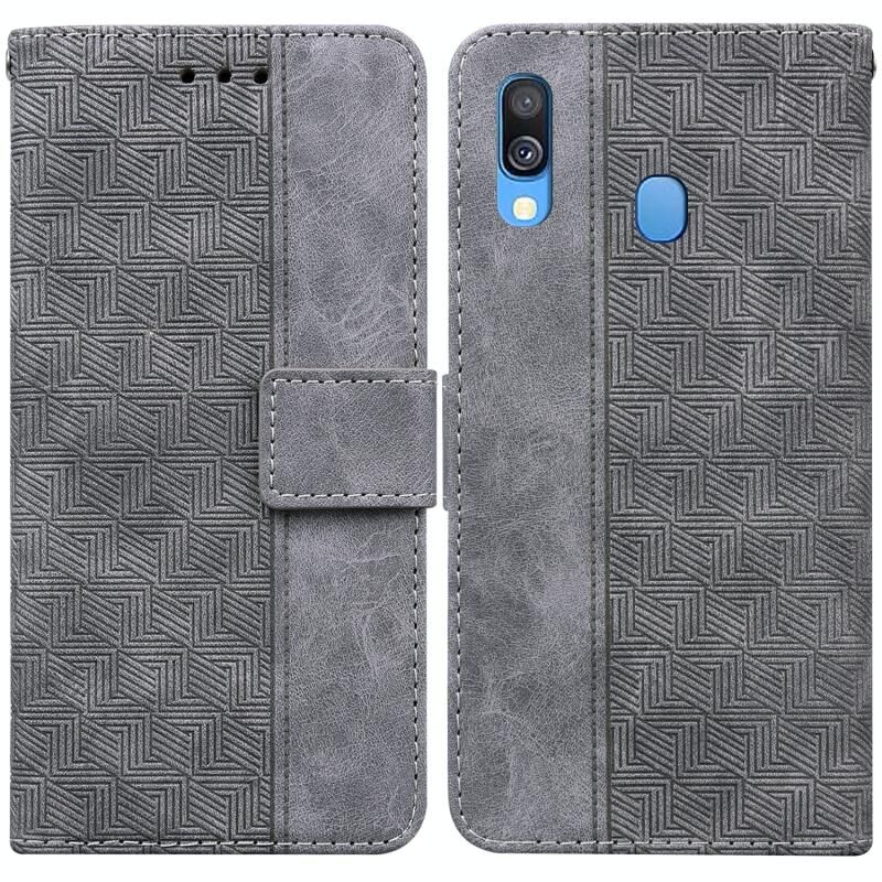 Για Samsung Galaxy A40 Γεωμετρική ανάγλυφη δερμάτινη θήκη τηλεφώνου (γκρι)
