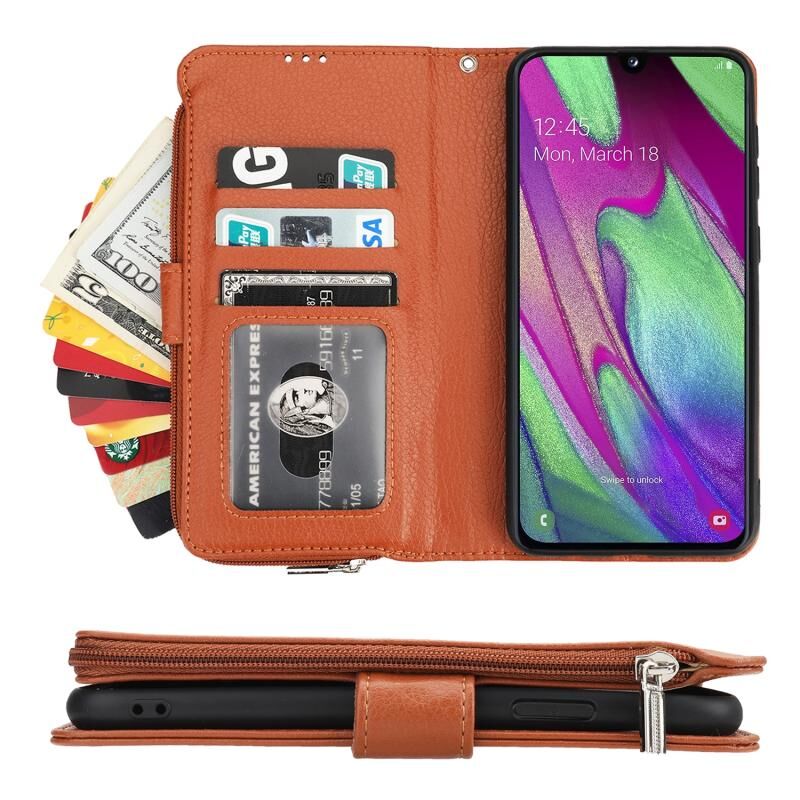 Για Samsung Galaxy A40 Microfiber φερμουάρ οριζόντια Flip δερμάτινη θήκη (Καφέ)