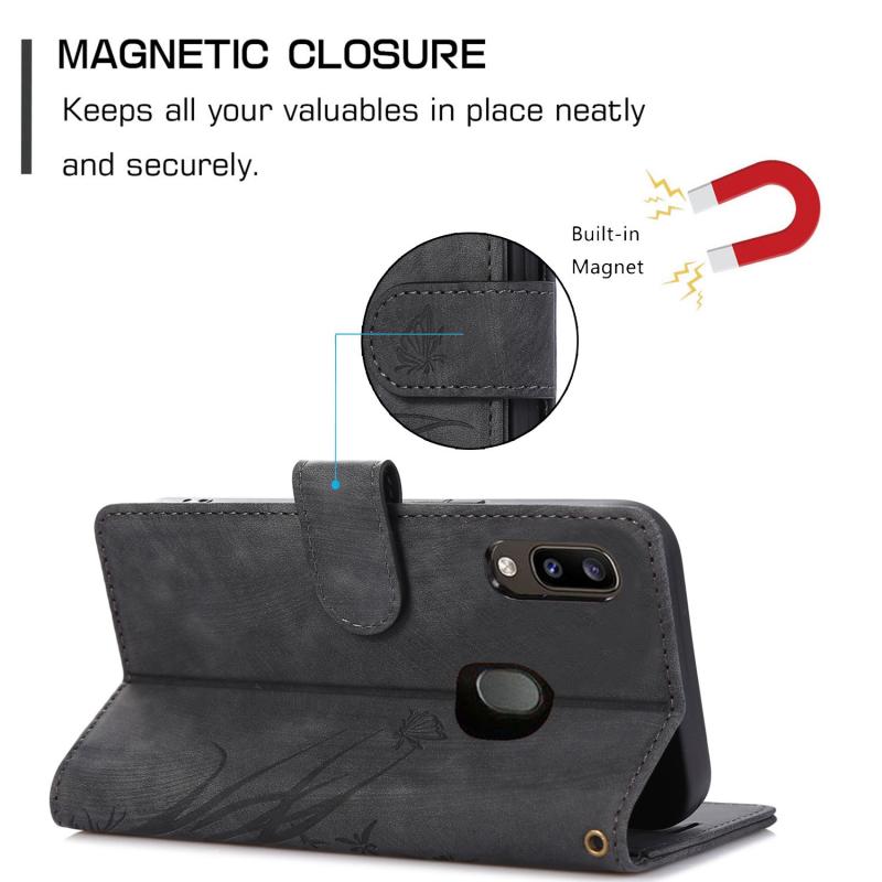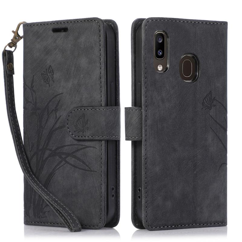 Θήκη τηλεφώνου Samsung Galaxy A40 Orchid Butterfly Embossed Leather (Μαύρο)