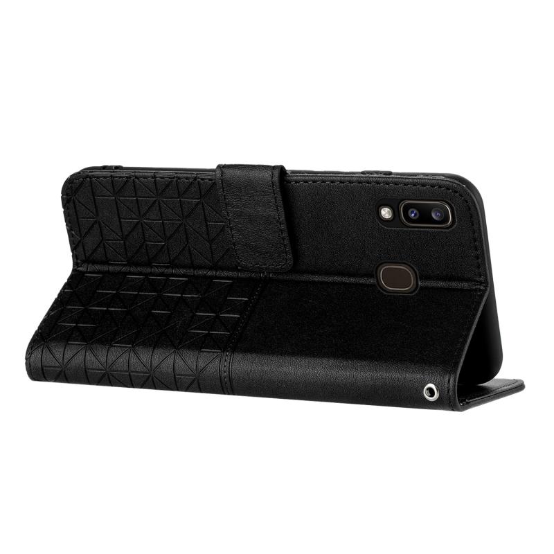 For Samsung Galaxy A40 Rhombic Texture Leather Phone Case with Lanyard(Black)