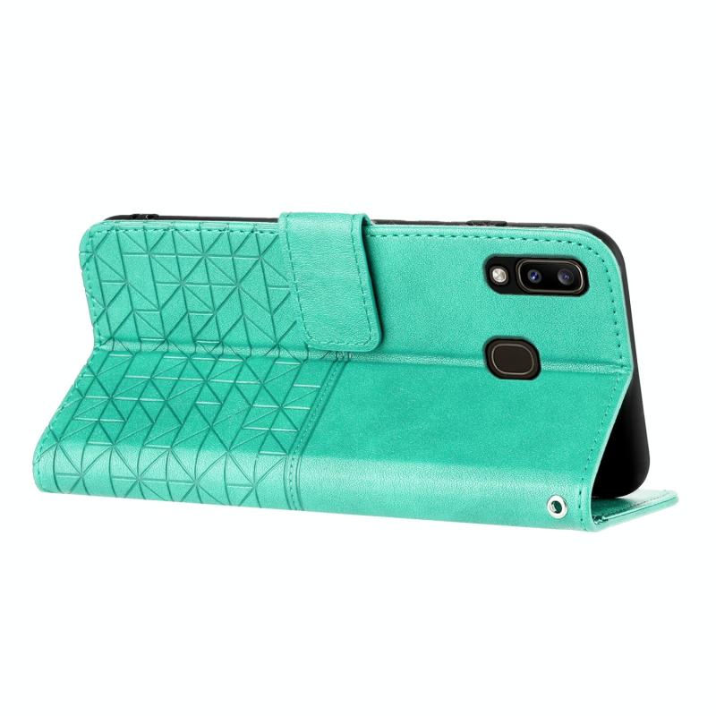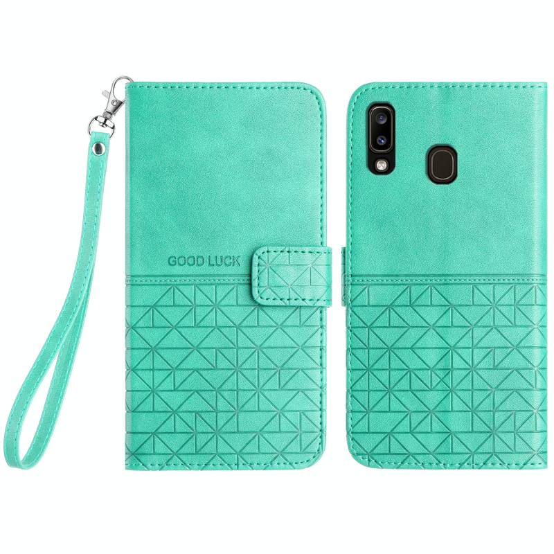 For Samsung Galaxy A40 Rhombic Texture Leather Phone Case with Lanyard(Green)
