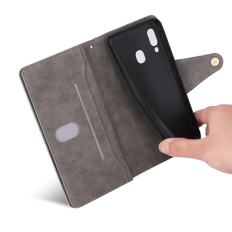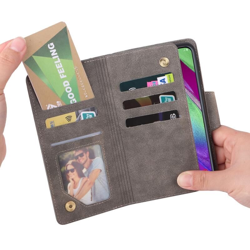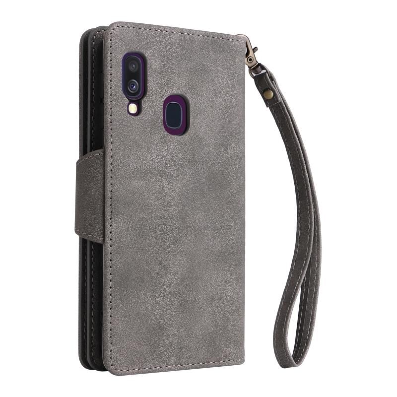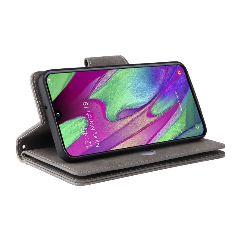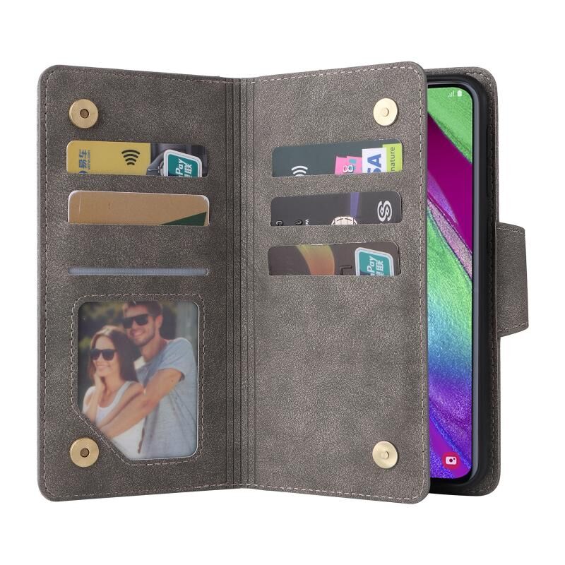 Για Samsung Galaxy A40 Rivet πόρπη 9 κάρτες τρεις φορές δερμάτινη θήκη τηλεφώνου (γκρι)
