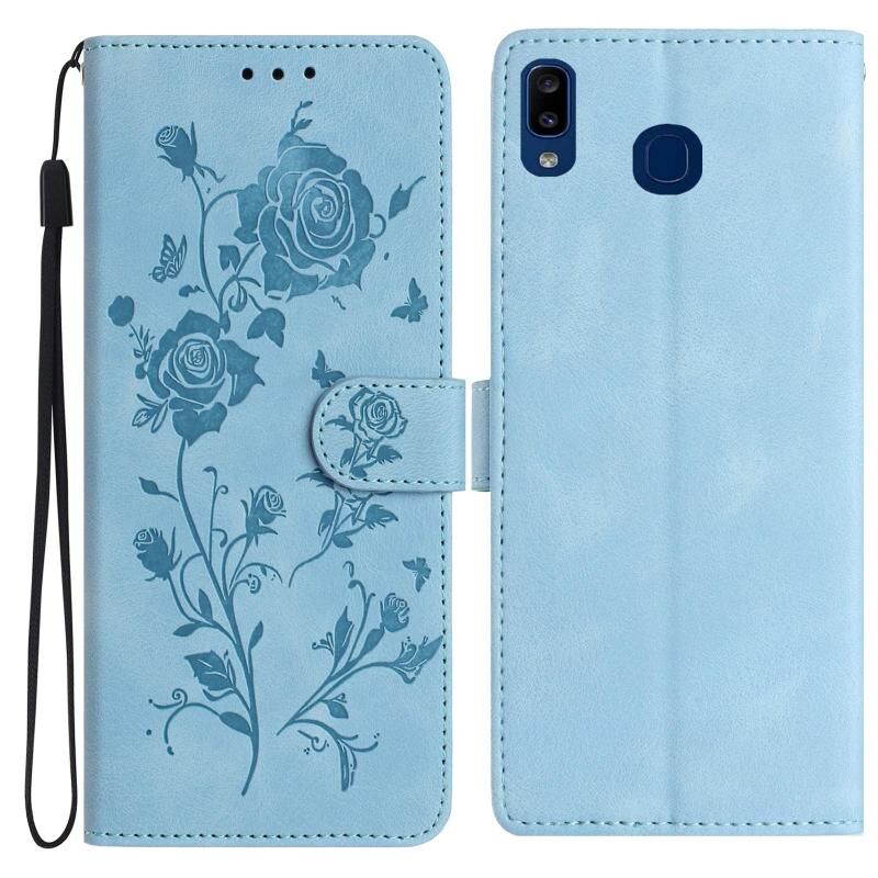 Θήκη τηλεφώνου δερμάτινη με ανάγλυφο σχέδιο ροζ άνθους για Samsung Galaxy A40 (Γαλάζιο του ουρανού)