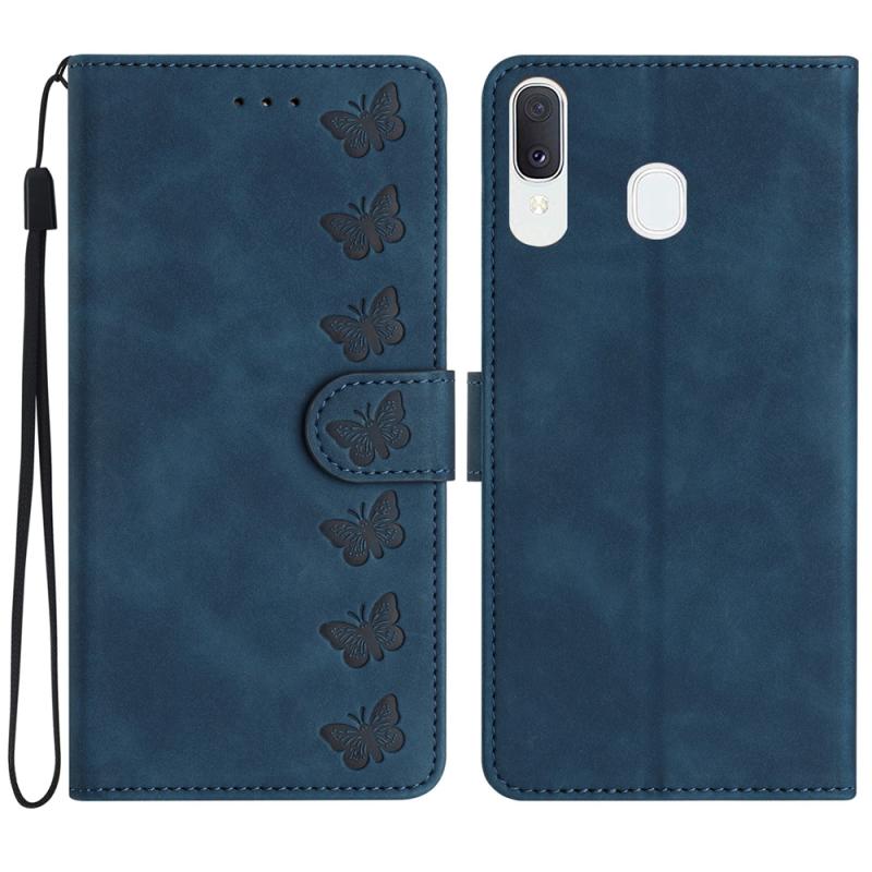 Θήκη τηλεφώνου Samsung Galaxy A40 Seven Butterflies, δερμάτινη με ανάγλυφο σχέδιο (Μπλε)