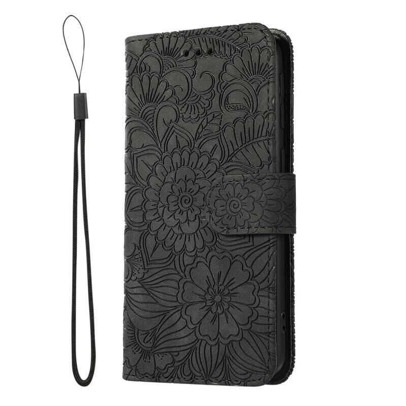 Για Samsung Galaxy A40 δέρμα αίσθηση ανάγλυφο ηλιοτρόπιο οριζόντια Flip δερμάτινη θήκη με υποδοχές για κάρτες & υποδοχές & πορτοφόλι & κορδόνι (Μαύρο)