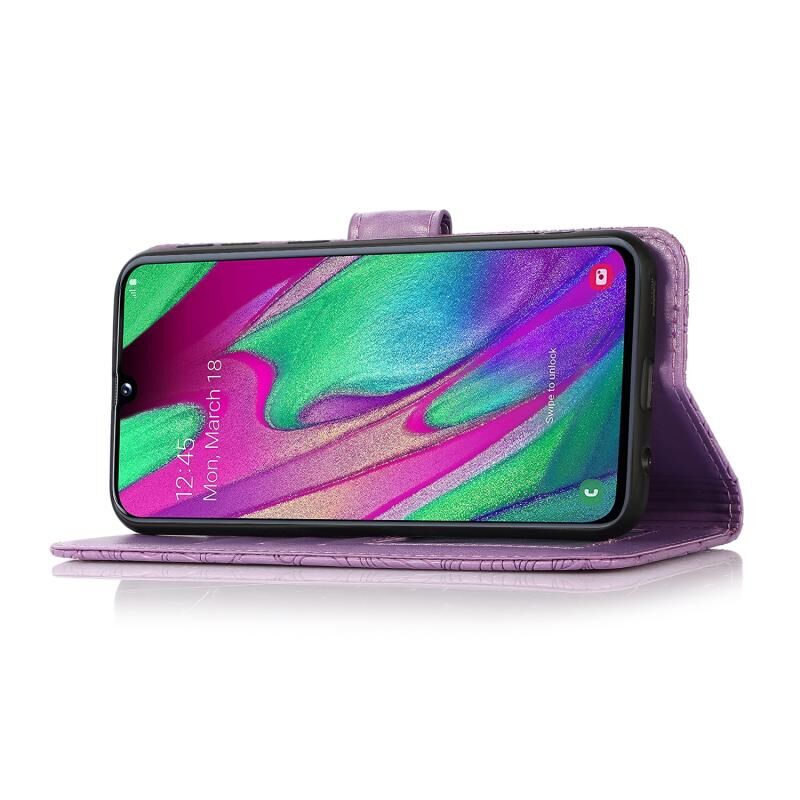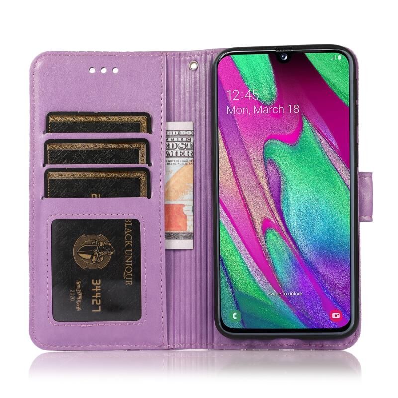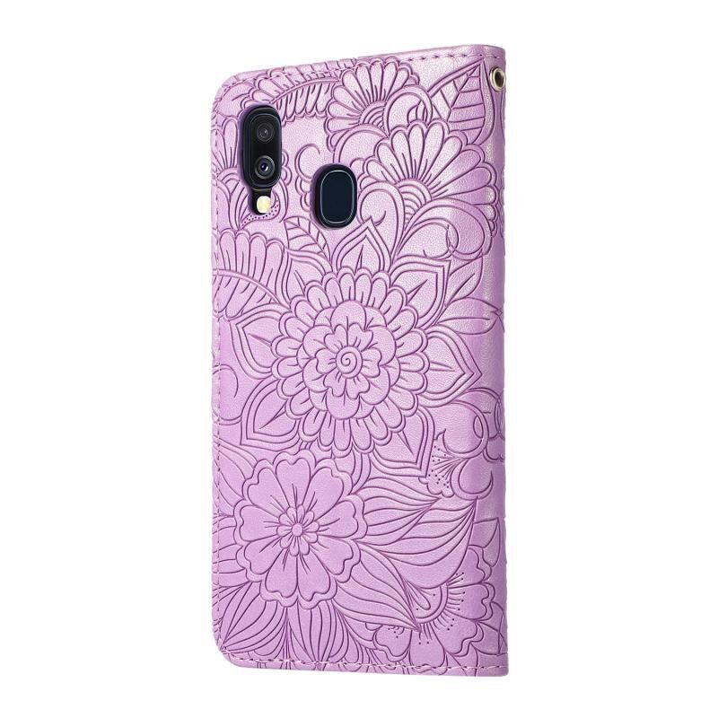 Για Samsung Galaxy A40 δέρμα αίσθηση ανάγλυφο ηλιοτρόπιο οριζόντια Flip δερμάτινη θήκη με υποδοχές για κάρτες & υποδοχές & πορτοφόλι & κορδόνι (Μωβ)