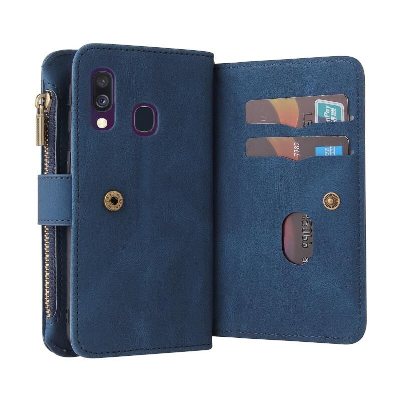 Για το Samsung Galaxy A40 Skin Feel PU + TPU Οριζόντια Flip δερμάτινη θήκη με θήκη για 15 κάρτες & υποδοχή & πορτοφόλι & τσέπη με φερμουάρ & κορδόνι (μπλε)