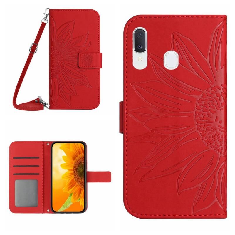 Για Samsung Galaxy A40 δέρμα αίσθηση Sun Flower μοτίβο Flip δέρμα τηλέφωνο υπόθεση με κορδόνι (Κόκκινο)