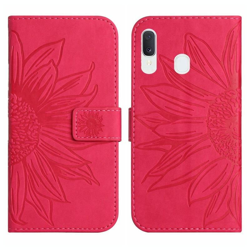 Για το Samsung Galaxy A40 δέρμα αίσθηση Sun Flower μοτίβο Flip δέρμα τηλέφωνο υπόθεση με κορδόνι (Rose Red)