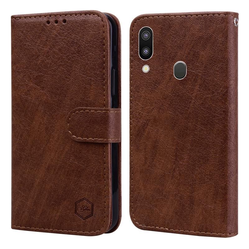 Θήκη κινητού τηλεφώνου Samsung Galaxy A40 με υφή δέρματος λαδιού PU + TPU (Σκούρο Μπλε)