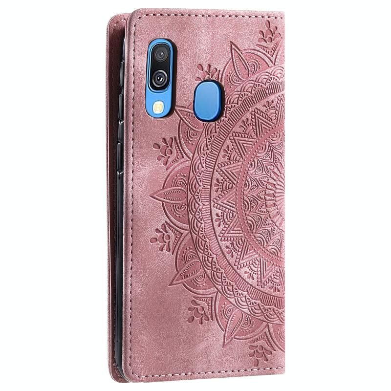 Για Samsung Galaxy A40 Totem ανάγλυφη μαγνητική δερμάτινη θήκη τηλεφώνου (Ροζ χρυσός)