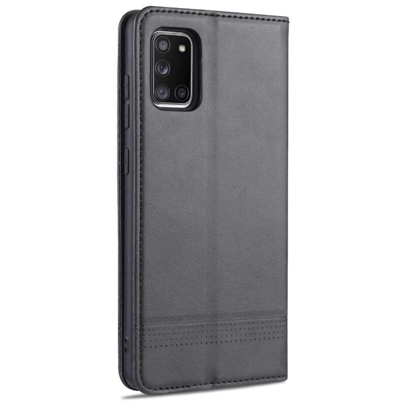 Θήκη Samsung Galaxy A41 AZNS Μαγνητική Δερμάτινη Οριζόντια με Υφή Μοσχαριού, με Θήκες Καρτών & Στήριξη & Πορτοφόλι (Σκούρο Καφέ) (Μαύρο)