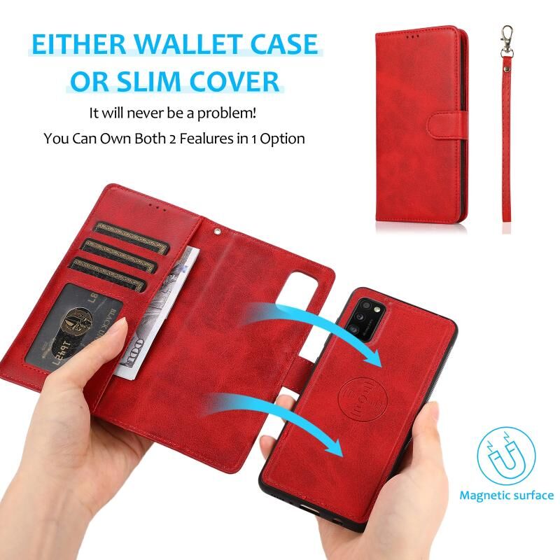 Για Samsung Galaxy A41 Calf Texture 2 σε 1 Αποσπώμενο μαγνητικό πίσω κάλυμμα οριζόντια Flip δερμάτινη θήκη με θήκη & υποδοχές για κάρτες & πορτοφόλι & κορνίζα φωτογραφιών (Κόκκινο)