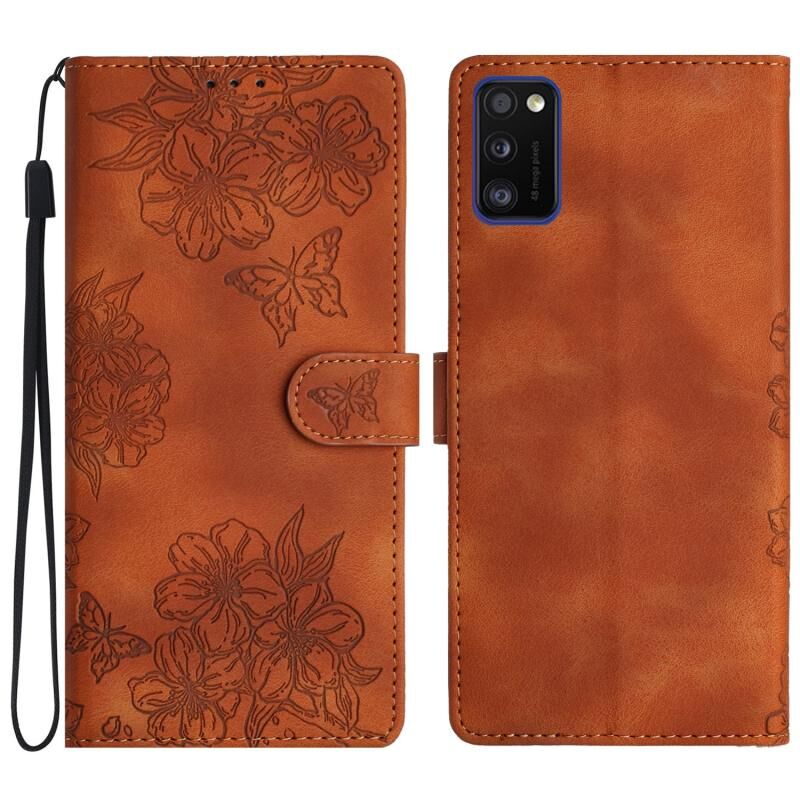 Θήκη κινητού τηλεφώνου Samsung Galaxy A41 Cherry Blossom Butterfly Skin Feel Embossed PU (Καφέ)